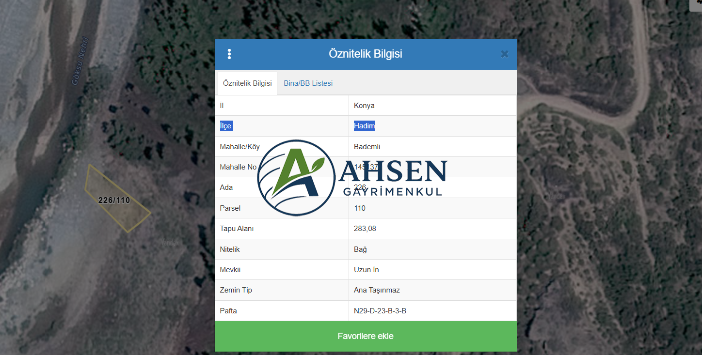 KONYA HADİM BADEMLİ’DE GÖKSU NEHRİNE SIFIR 283 m² BAĞ – TURİZM MERKEZİ YERKÖPRÜ ŞELALESİNE SADECE 4 KM!